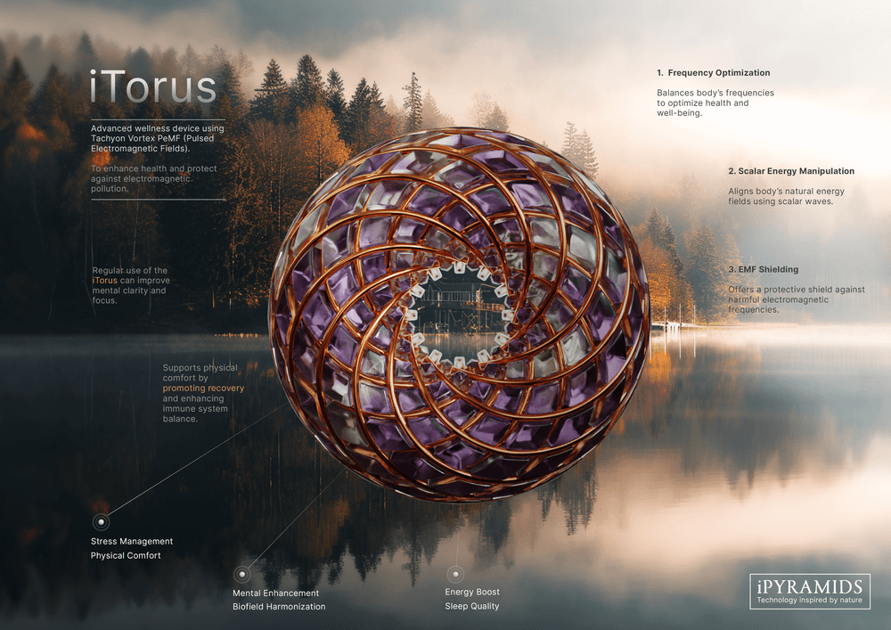 Advanced Technology: The iTorus leverages Pulsed Tachyon BioRejuvenation® vortex coil technology to produce a potent square-wave centripetal field inspired by the coils used by NASA for astronaut recovery.