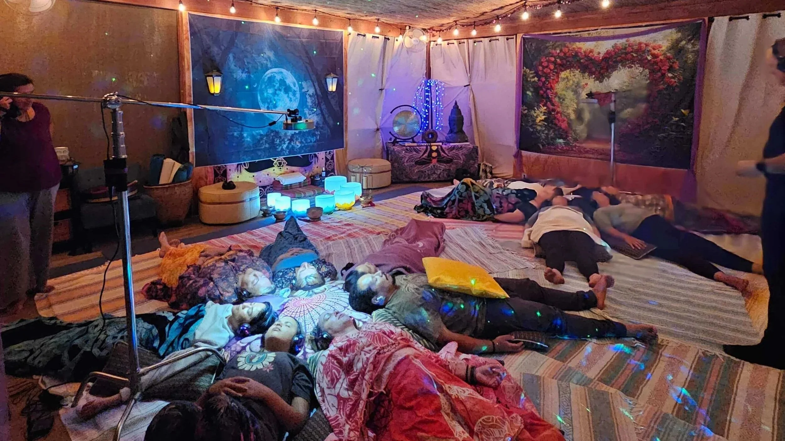 This experience blends ancient meditation principles with modern frequency-based technology, creating a safe and profound container for stress relief, spiritual exploration, and inner renewal.
